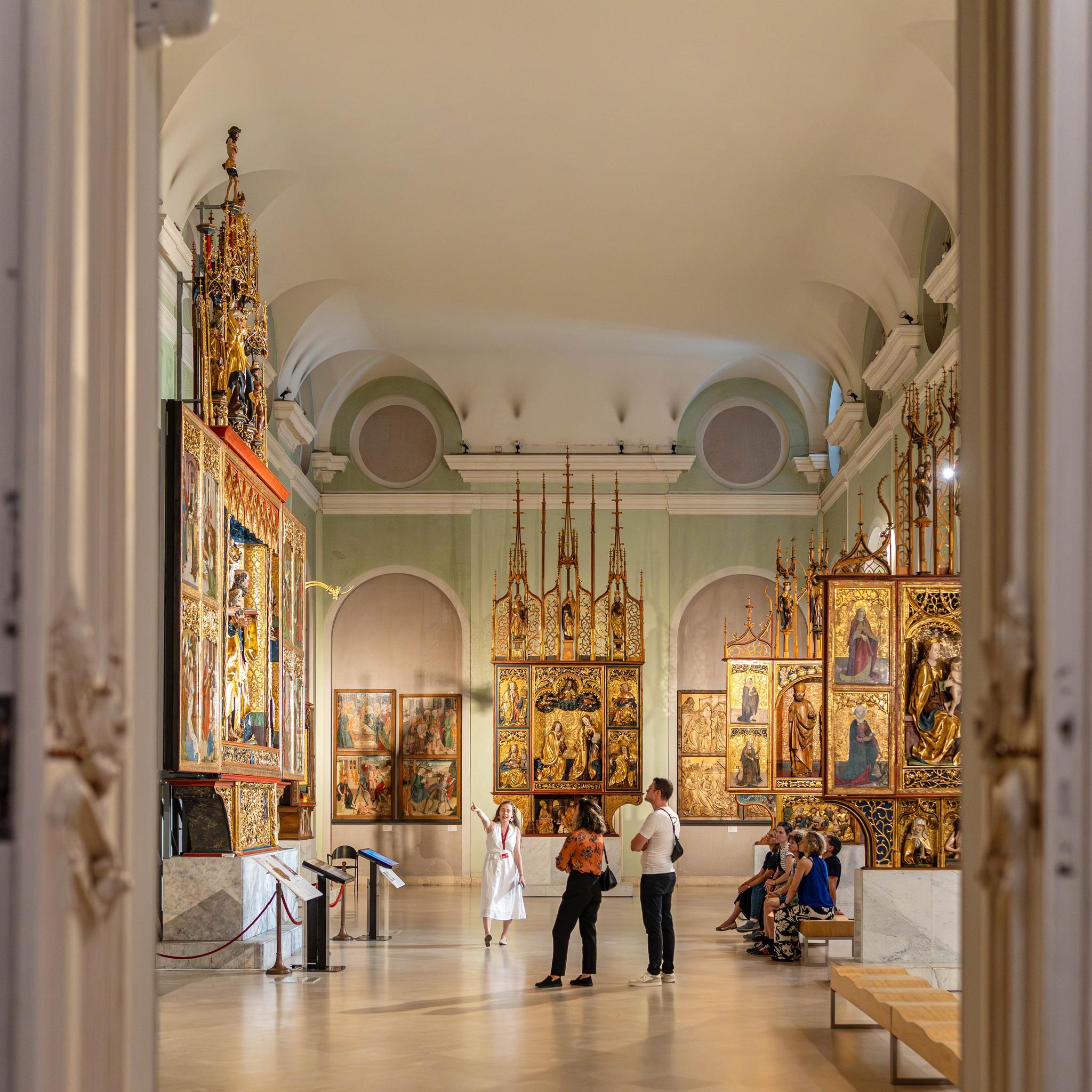 A késő gótikus szárnyasoltárok 1982 óta láthatók a palota hajdani tróntermében. Különleges találkozása ez a világi pompának és az egyházi művészetnek.