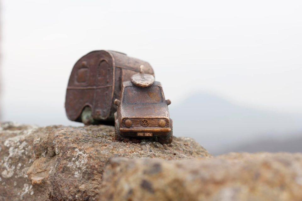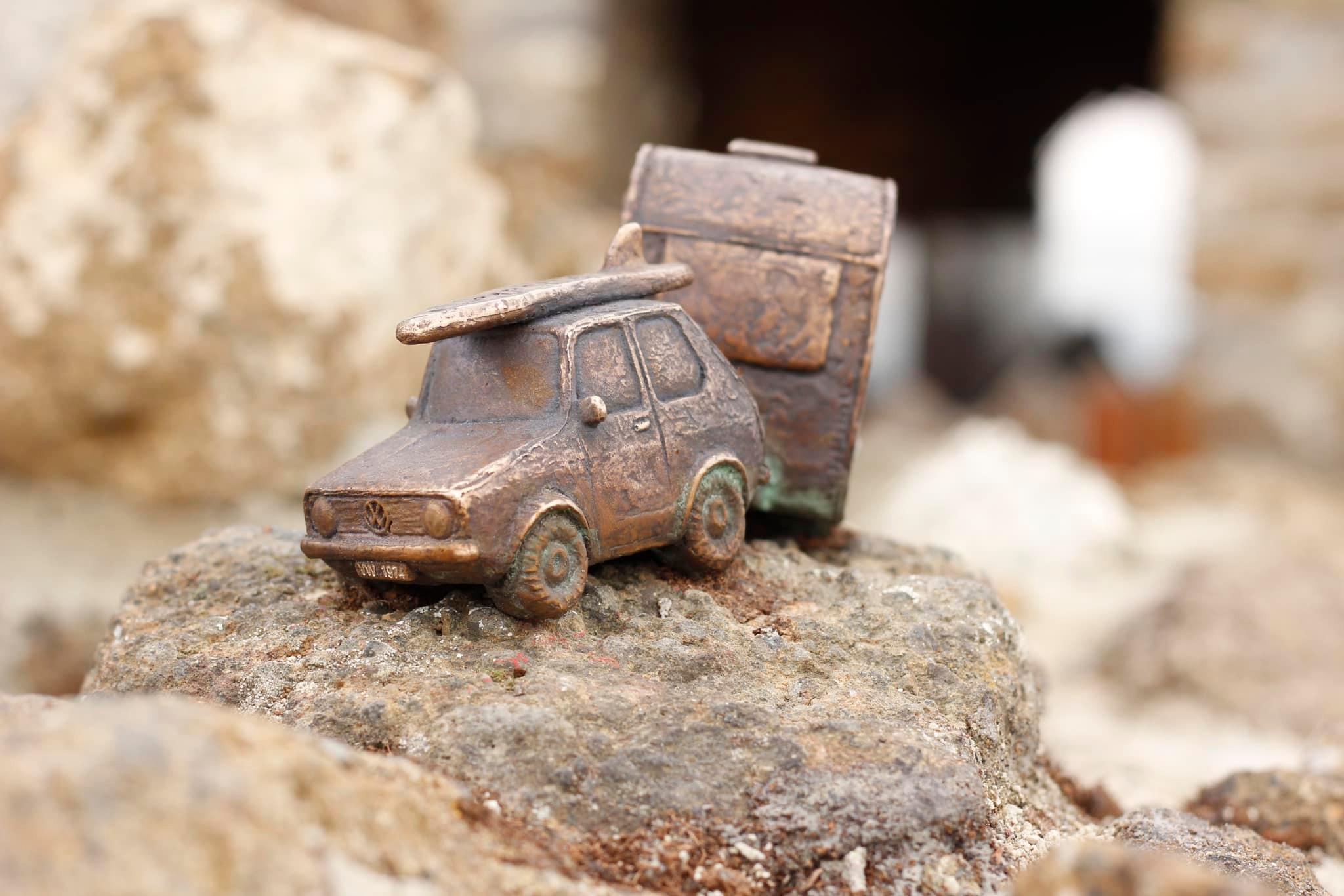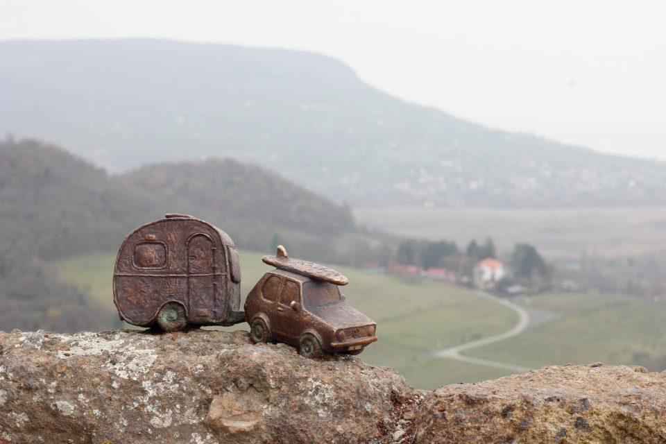 Ezúttal Szigliget vára lett a kiválasztott helyszín, ahol Kolodko napokkal ezelőtt elhelyezte legújabb miniszobrát. Az alkotás minden részletében a Balaton szellemét idézi: egy 50 éves autólegenda, egy lakókocsi, szörfdeszka és a végtelen tó – mindez egyetlen apró műben.