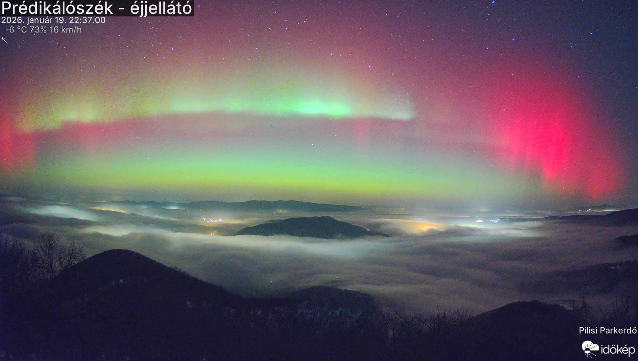 A prognózisokhoz képest órákkal később, már hétfőn a késő esti órákban is láthatóvá vált a sarki fény az ország számos pontján. Időjárás-előrejelző webkamerák és szemfüles fotósok meg is örökítették a különleges pillanatokat.