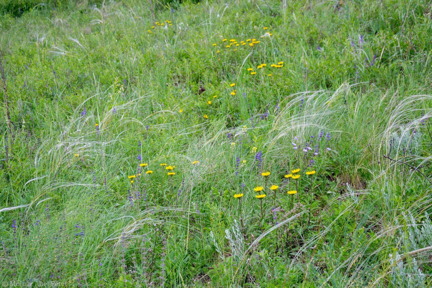 Balról jobbra haladva megjelenik rajta a kunkorgó árvalányhaj, a mezei üröm, a magyar szegfű. Gyönyörű ábrázolást kapott a jajrózsa, a pusztai meténg és a borzas peremizs. Látható rajta karcsú fényperje, pusztai árvalányhaj, törpemandula, csomós harangvirág, kardos peremizs, valamint zászlós csűdfű. Nem hiányozhat az illusztrációról a macskafarkú veronika, bárányüröm, gumós macskahere, hegyi here. Felfedezhető a sárga len, a vékony csenkesz, a pusztai kutyatej, a ligeti zsálya. Szintén helyet kapott a képen a heverő seprőfű és a csipkés gyöngyvessző is.