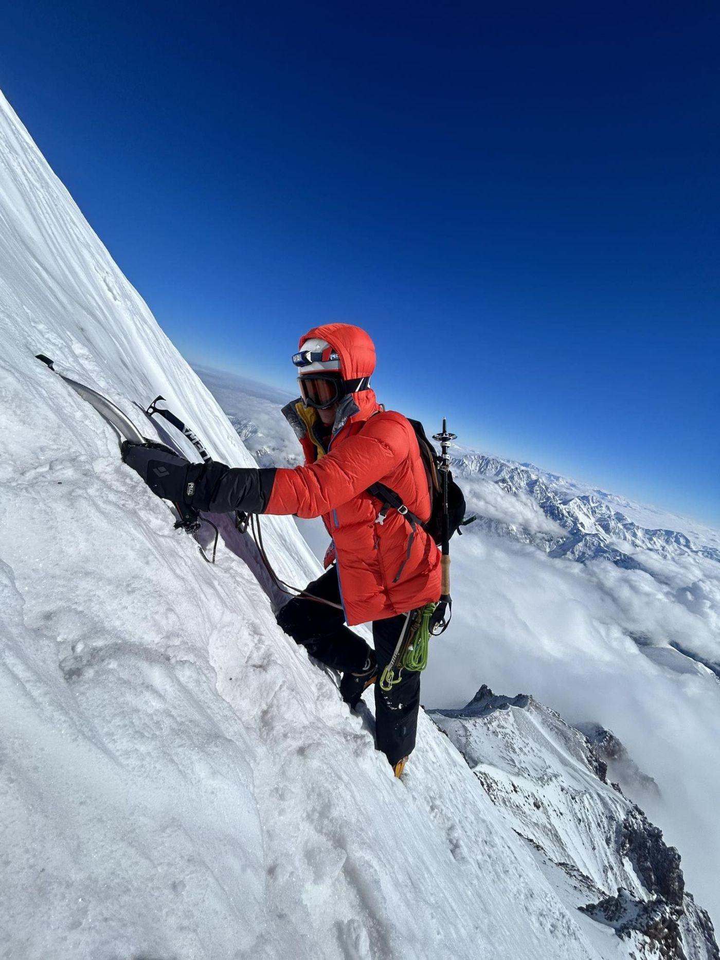 „A felső rész kemény tükörjég, végig biztosítani kellett, így belassultunk” – mondta.