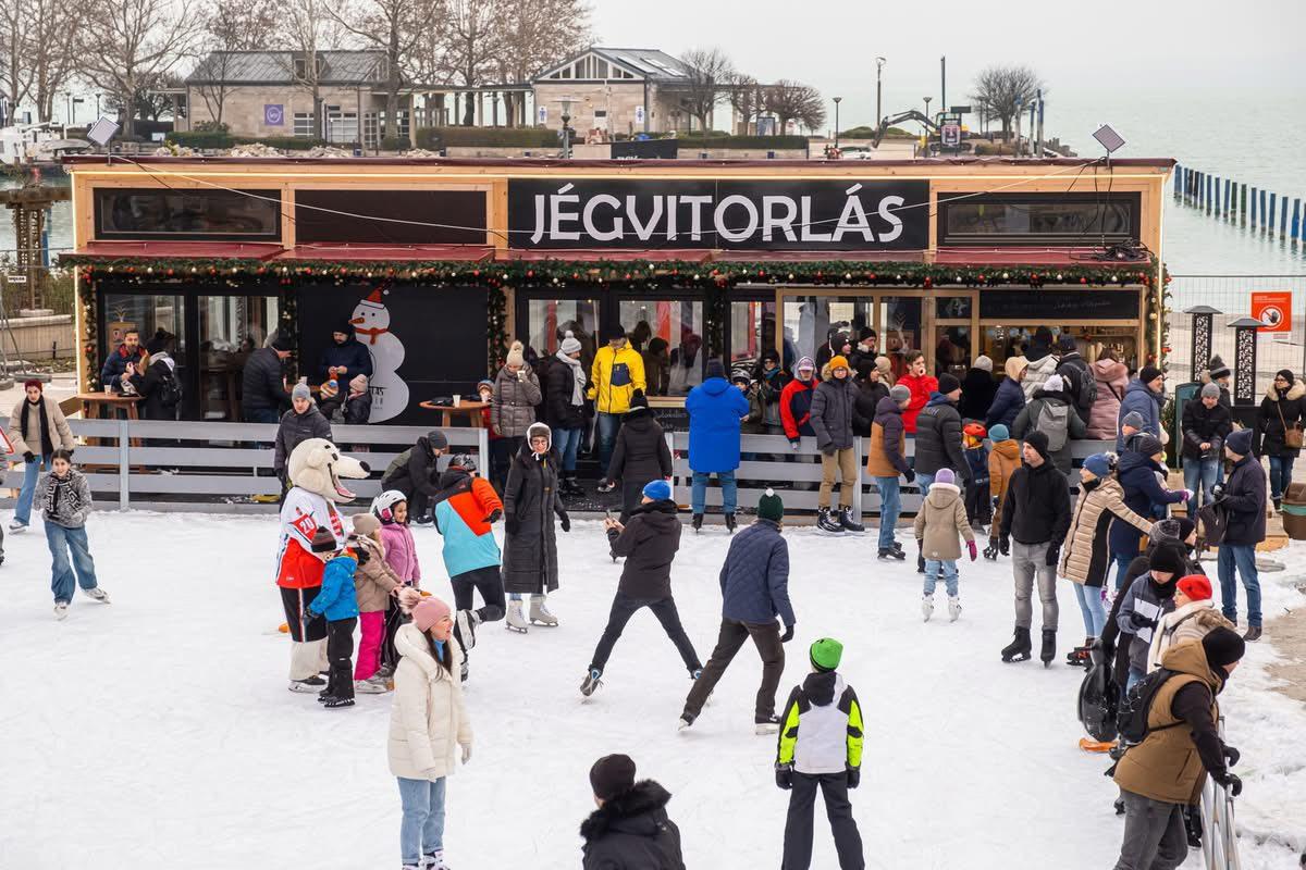 Az egy kilométer hosszú folyosóval egybekötött, 3600 négyzetméteres jégpálya, amely a Zákonyi utcai, a Vitorlás téri, és a Tagore sétányon álló pályákat öleli fel, jövő év január 31-ig üzemel majd. Gyors és kényelmes online jegyváltás, külön pálya a kisgyerekeknek, a füredi lakosoknak pedig kedvezményes jegyek járnak majd.