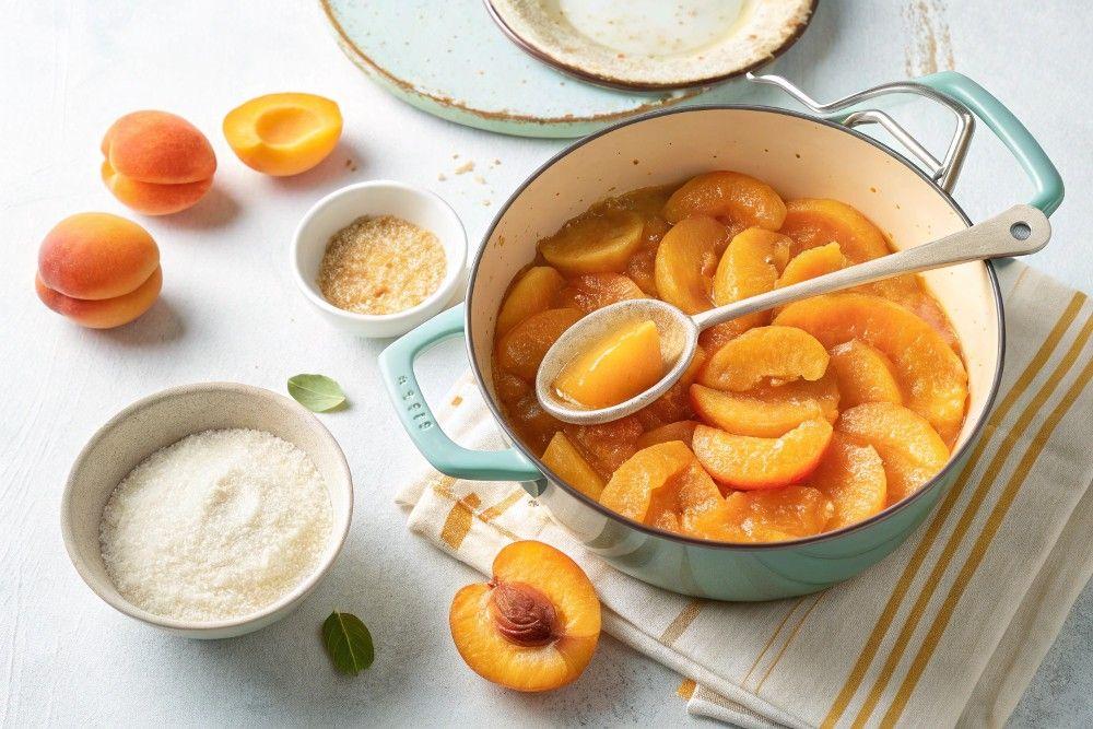 A barackot a gyömbérrel együtt főzni kezdjük, gyakran kevergetve, amíg teljesen szét nem esik. Hozzáadjuk a cukrot, majd a pektines cukrot lassan, folyamatos keverés mellett beleforgatjuk. 5 percig forraljuk, tiszta üvegekbe töltjük, és kidunsztoljuk.