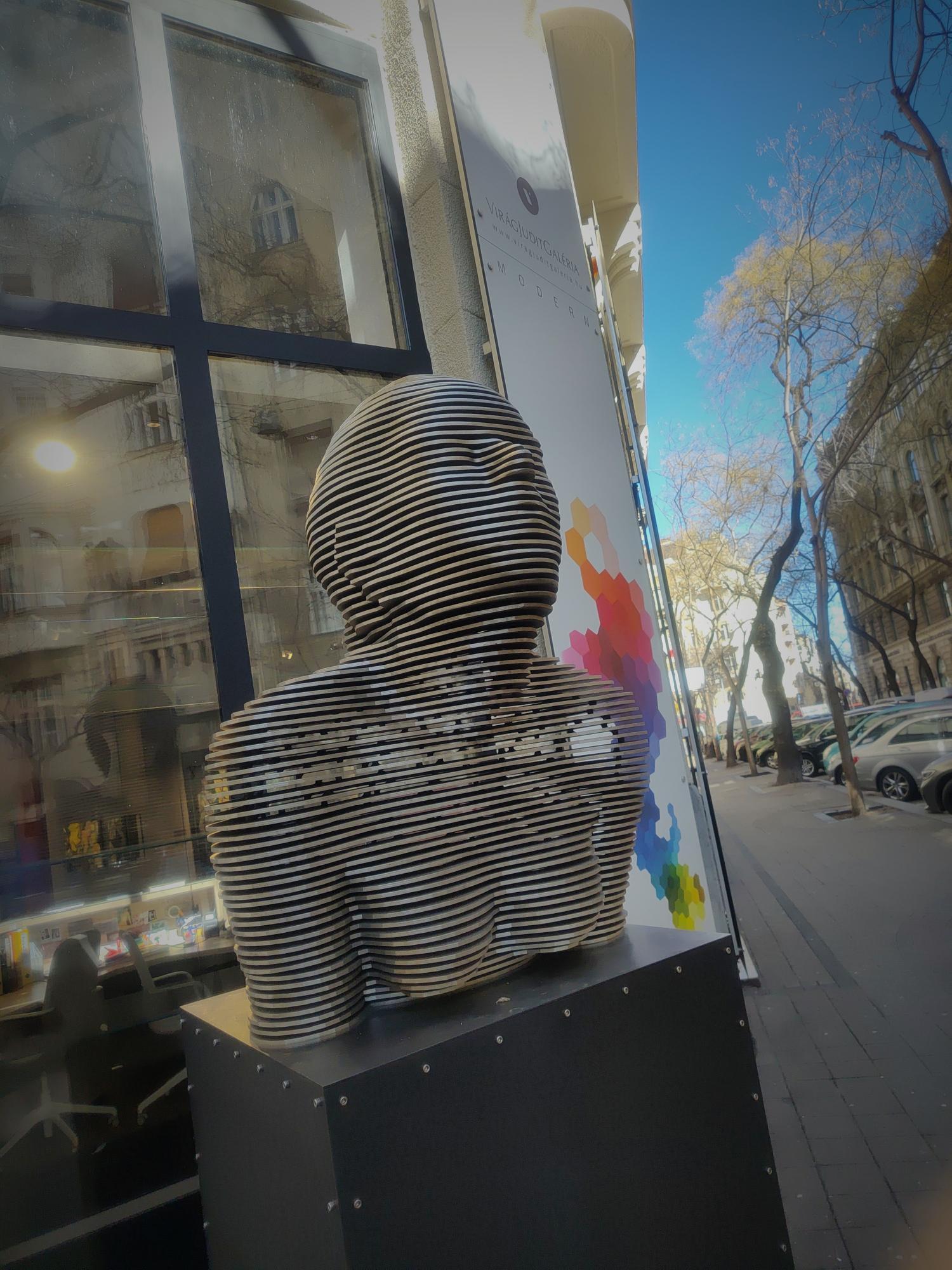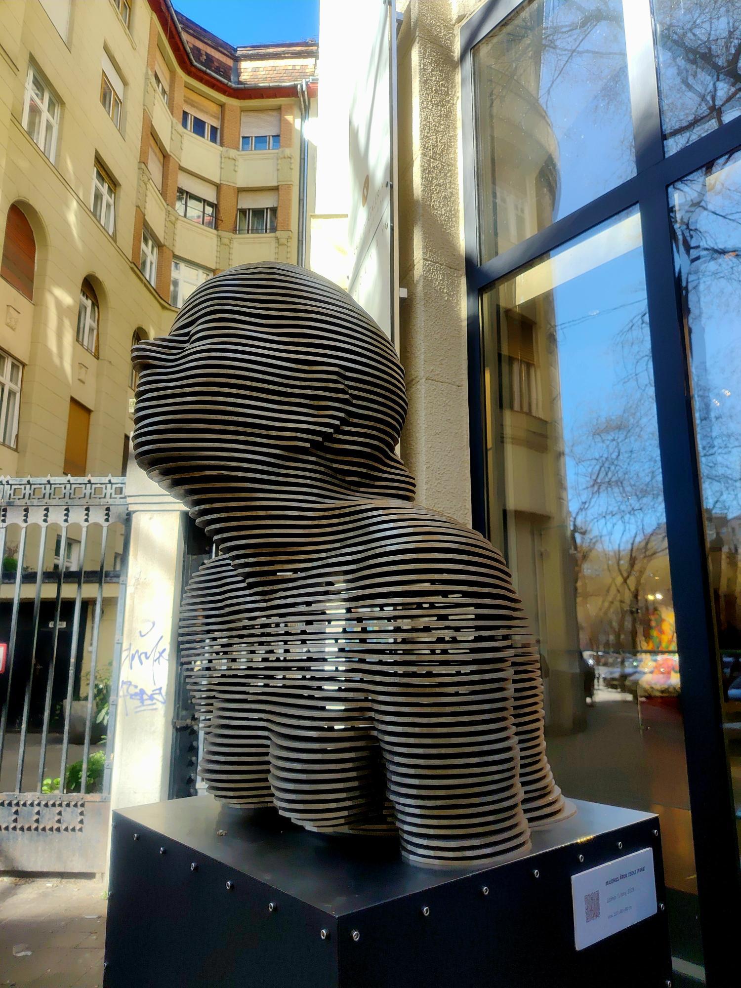A Falk Miksa utcában mindig akad látnivaló, ezúttal egy monumentális női alakot formázó szobor bukkant fel a Virág Judit Galéria bejárata mellett. Majoros Áron Zsolt műve különleges anyagból és technikával készült – a rozsdamentes acél vonzza a tekinteteket.