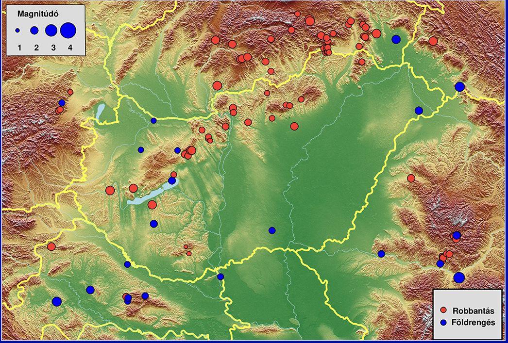 A képen látható térképen huszonháromb földrengést és hetvennyolc úgynevezett antrogopén szeizmikus, vagyis emberi tevékenység által okozott eseményt regisztráltak a szakemberek.