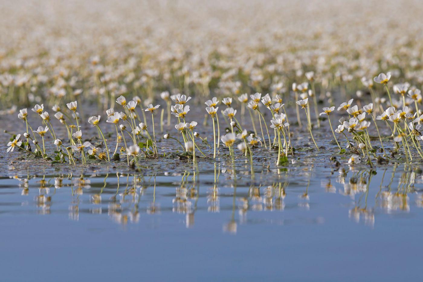 Habarics Béla, a Hortobágyi Nemzeti Park természetvédelmi őrszolgálatának munkatársa a Beregi-síkot járva számolt be a most nyíló víziboglárkák csodálatos látványáról.