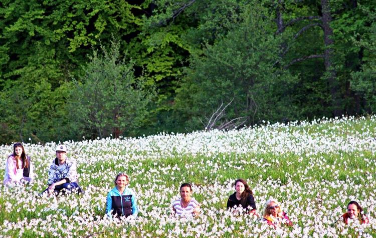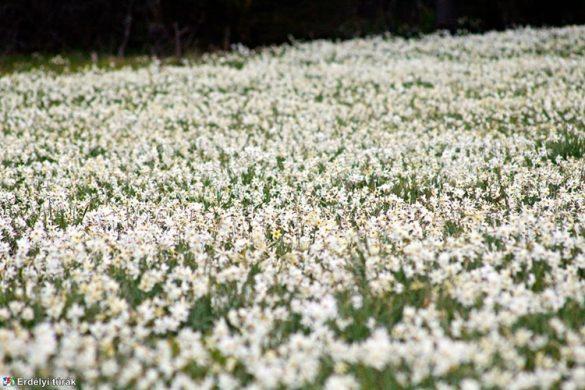 Szélcsendes, derült időben egészen különös fények játszanak a táj fölött: a zöld rétek és a fehér virágszőnyeg találkozása egyszerre hat nyugtatóan és ünnepélyesen. A levegő tiszta, a nárciszok illata éppen csak érzékelhető, épp annyira, hogy tudatosítsa bennünk, kivételes helyen járunk.