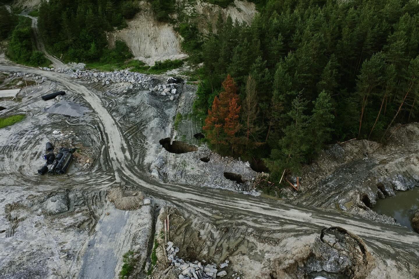 Az ErdélyTV pedig látványos, de meglehetősen ijesztő drónfelvételeket osztott meg a parajdi sóbánya feletti felszíni területről. A képkockákon jól látszódnak beomlások és süllyedések is.