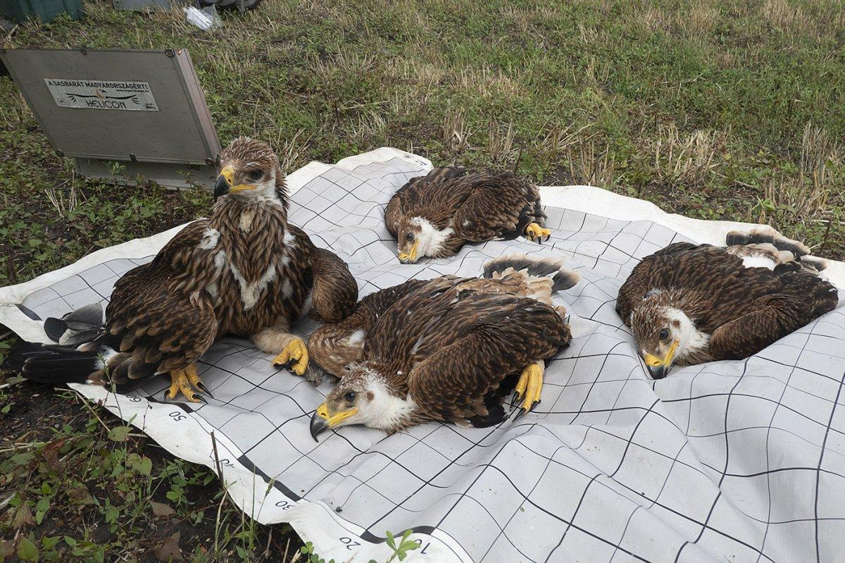 A Körös-Maros Nemzeti Park Igazgatóság illetékességi területén másodszor fordult elő, hogy négy parlagi sas fióka repült ki egy fészekből. Erről számolt be weboldalán a nemzeti park. A gyönyörű madarak gyűrűzését fotókon is megörökítették.