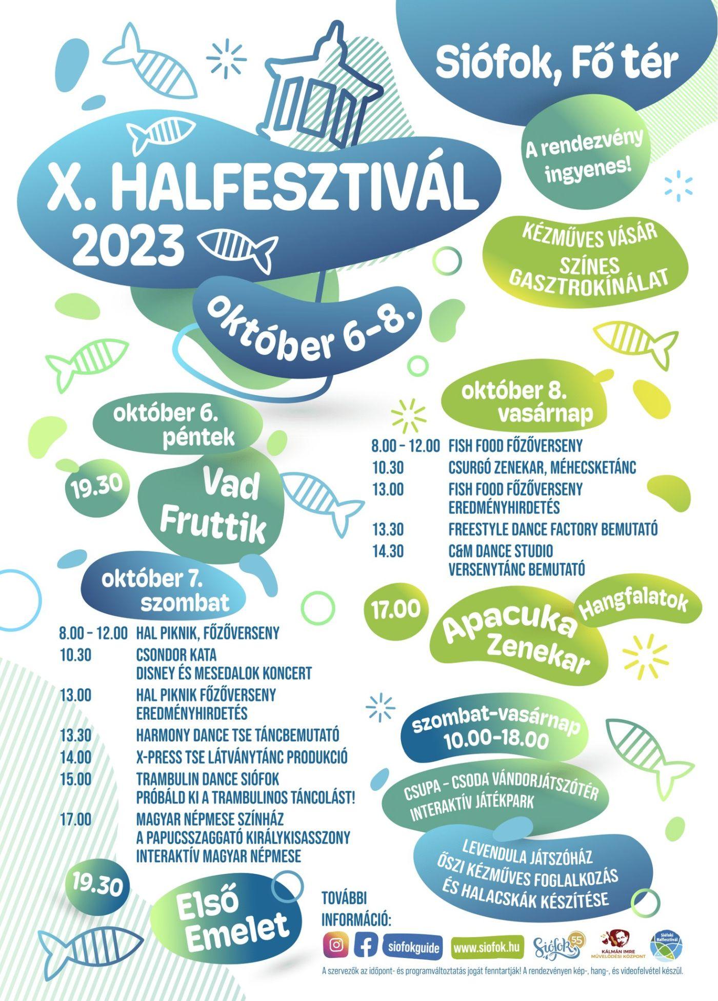 Az október 6. és 8. közötti X. Halfesztivál színes családi és gasztronómiai programjaival, esti koncertjeivel – Vad Fruttik, Első Emelet – hozza el a fesztiválok hangulatát, kiegészítve a halas ízek világával és a street food-dal.