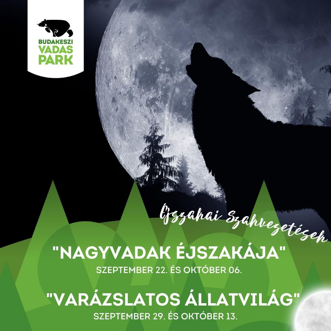 A szarvasbőgés túrákon túl a Budakeszi Vadasparkban ősszel négy alkalommal várják éjszakai szakvezetéssel a látogatókat. Kétféle tematikus esti programon leshetnek be a résztvevők az állatok éjszakai életébe, a „Varázslatos állatok” és a „Nagyvadak éjszakája” című programokon.