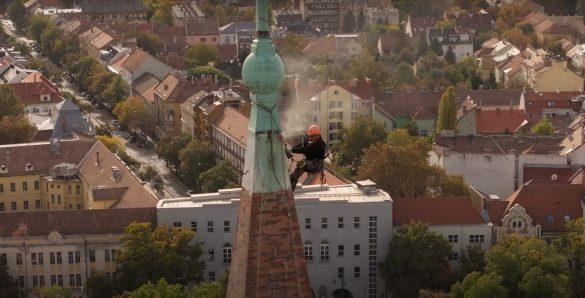 Látványos videó mutatja meg, hogyan újul meg a csodálatos szegedi dóm harangtornya
