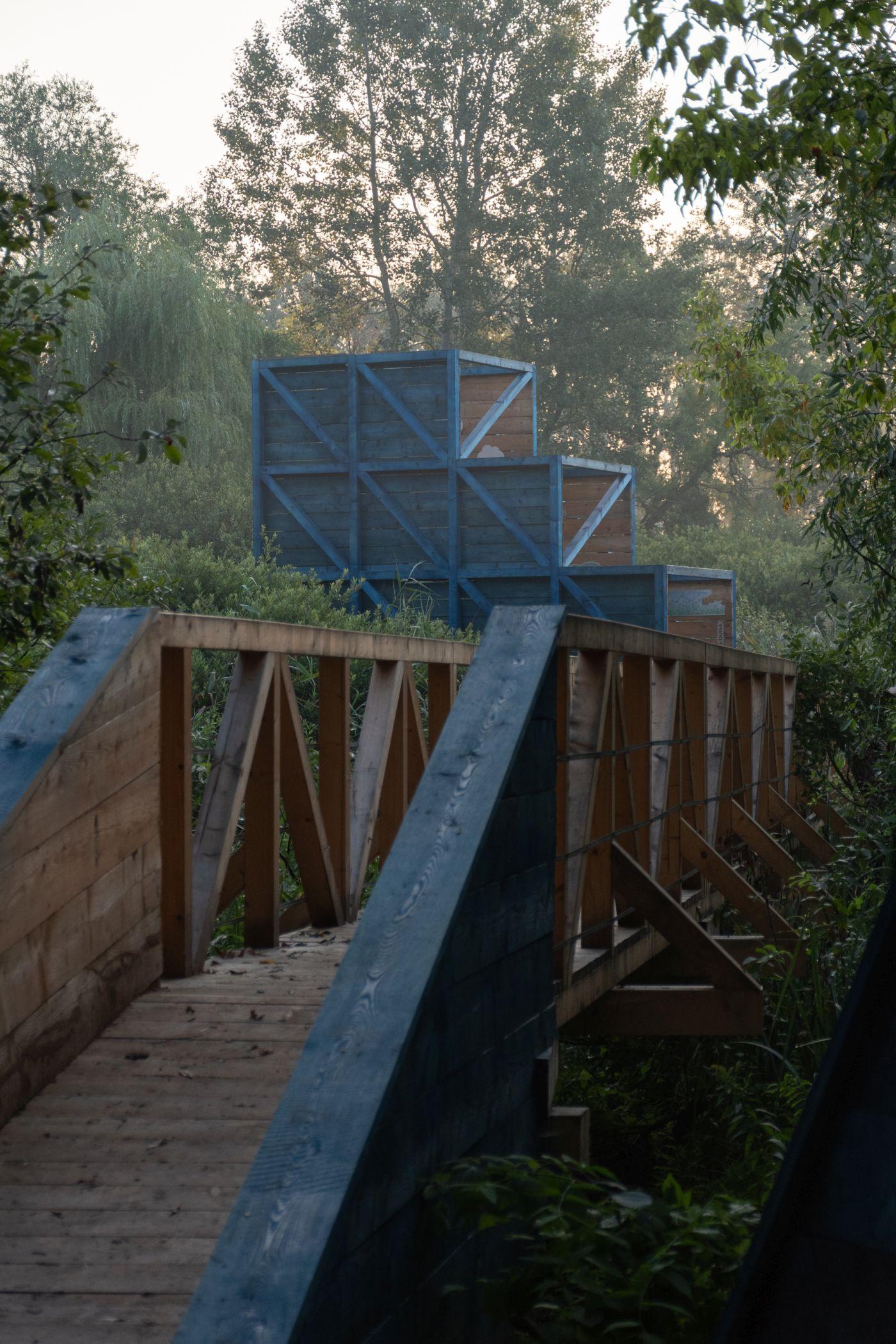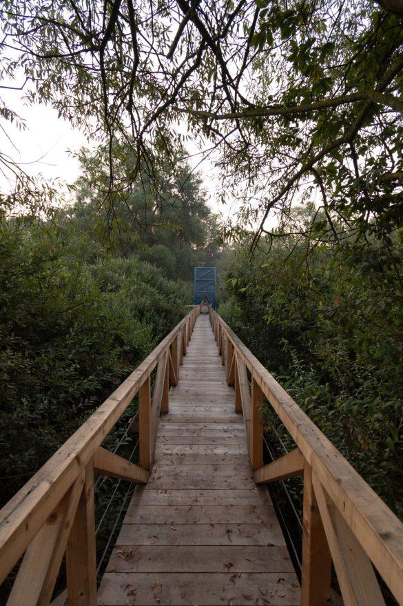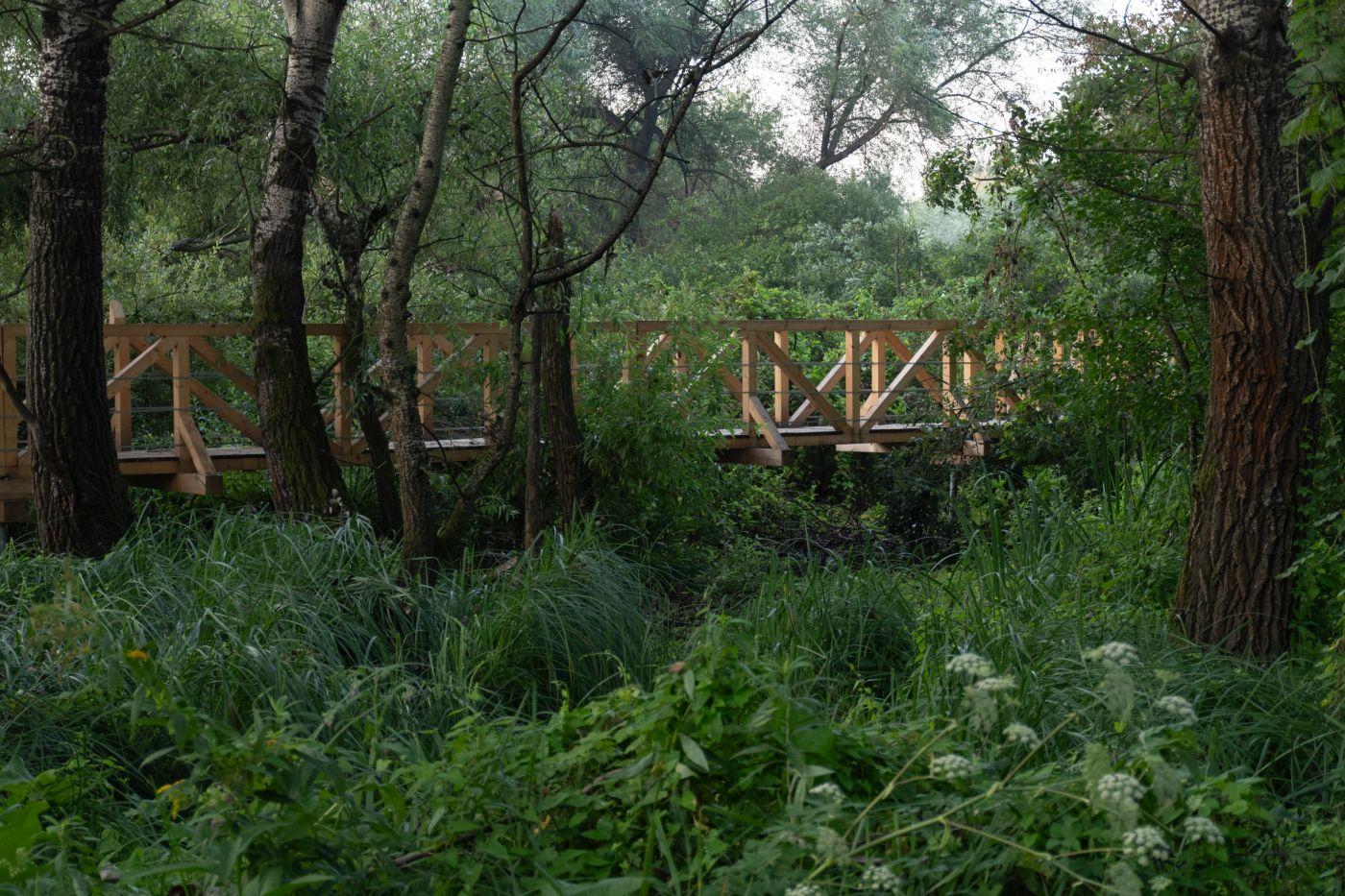 A tanösvény legnagyobb szerkezete a tizenöt méteres híd lett. A területtel határos csatorna felett vezeti be a látogatót a területre, ahonnan a tanösvény lápi része elindul. Ez egyben az első híd, amelyet a Paradigma Ariadné tervezett és kivitelezett.