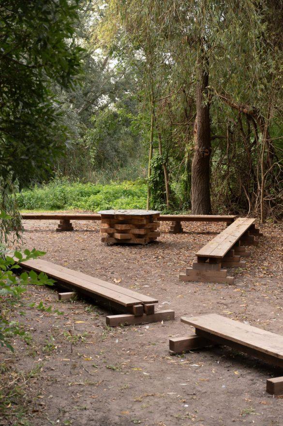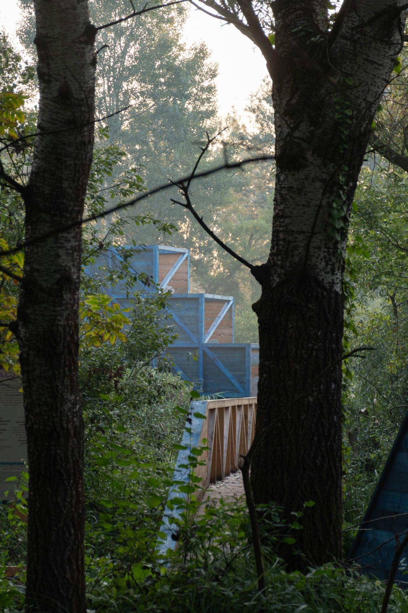 Olyan tárgyakat akartak lehelyezni erre a területre, amelyek nem ház szerűek, de nem is a természetesség hangulatát megidézni vágyó nyers fa építmények. Egyértelműsíteni akarták, hogy maga a tanösvény, mint struktúra, idegen a területen, még akkor is, ha bejárhatóságával fontos ismereteket adhat át a látogatók számára, és ezzel hozzájárul a környezettudatos gondolkodás formálásához, így pedig a terület megóvásához.