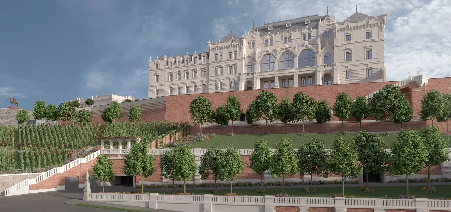 Elkezdték visszaépíteni a nyugati kerteken áthaladó Ybl-lépcsőt, amelyen majd újra könnyedén le lehet jutni a megújuló Szent György térről a Palota útra. A történelmi környezetbe illeszkedő, több szakaszból álló lépcső alsó szakaszával hamarosan elkészülnek.