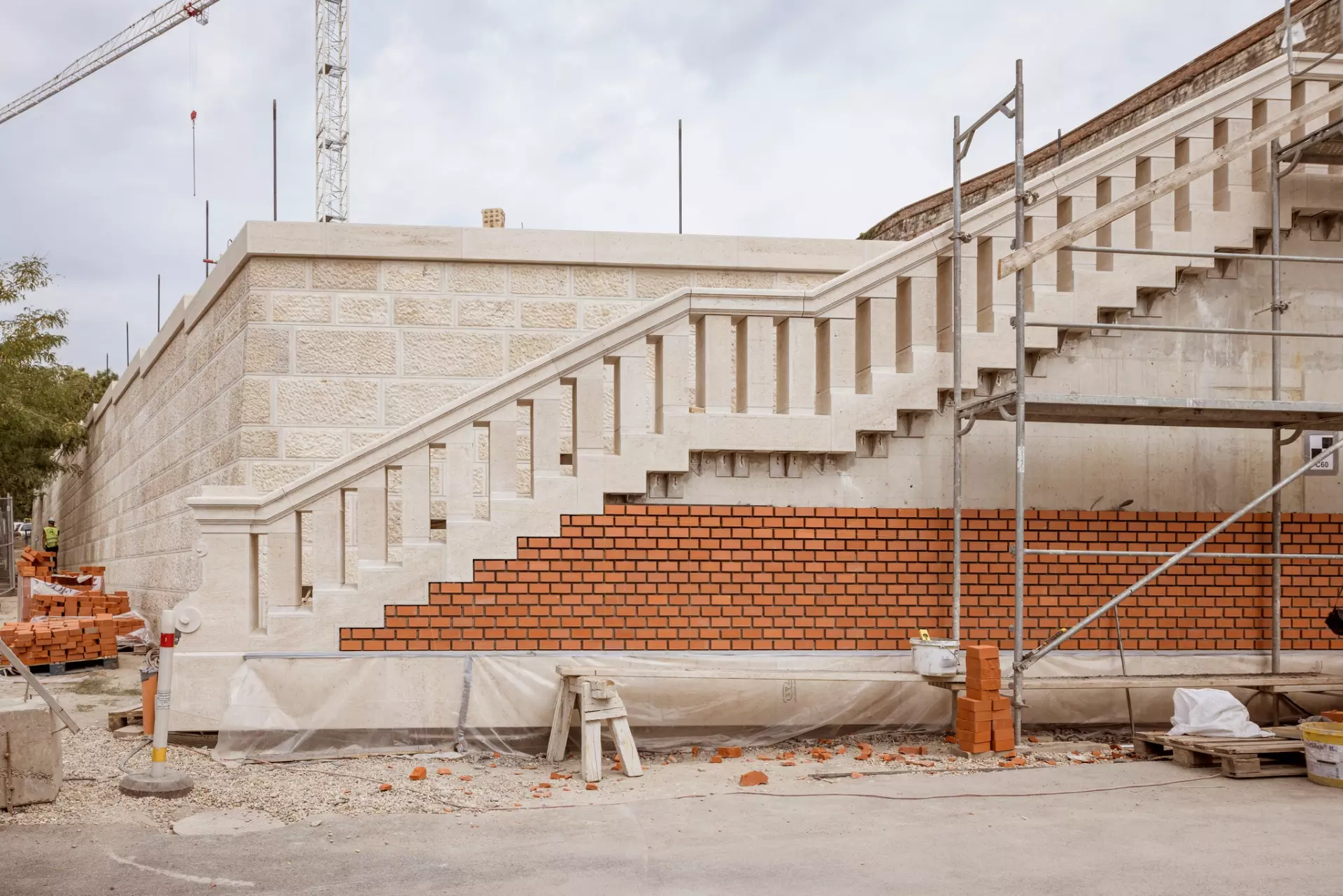 A lépcső tartószerkezetét a legmodernebb technikai elvárások szerint, a fellelt korabeli fotók figyelembevételével építik újjá. Megjelenése, anyaghasználata, külső burkolatai megegyeznek az eredeti állapottal, amely illeszkedik az Ybl-támfal klinkertégla és süttői mészkő burkolataihoz.