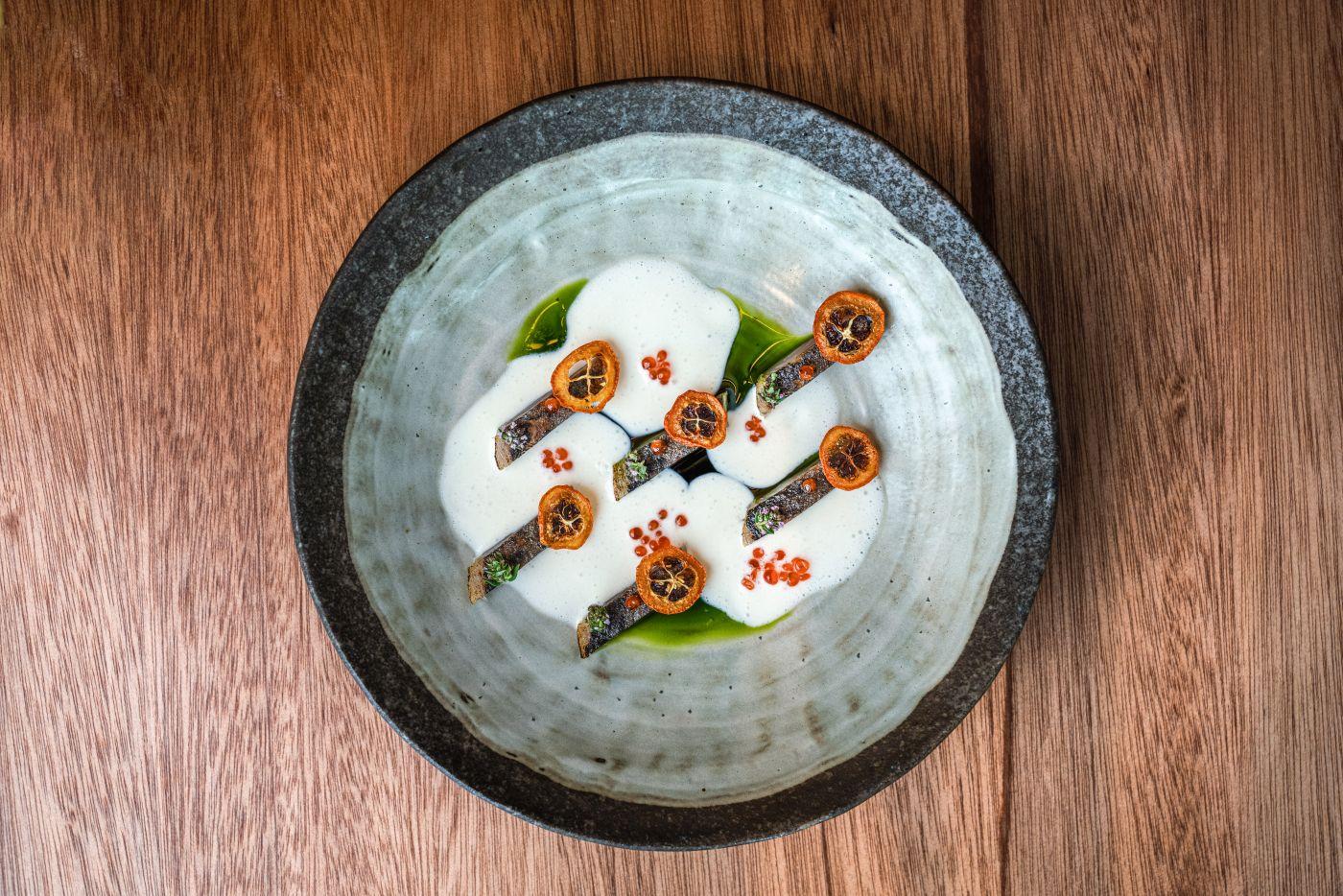 Friss kamillavirág, zöldolaj, fekete fokhagymakrém, meggy coulis, pattogtatott vadrizs, abált kacsanyelv, csillagánizs, kakukkfű olaj, mangold, marokkói citrom, tempurált medvehagyma, pirított mogyoró, málnapor csak néhány rejtett hozzávaló, mely igazán Bíró Danisra formálja az új ételeket.