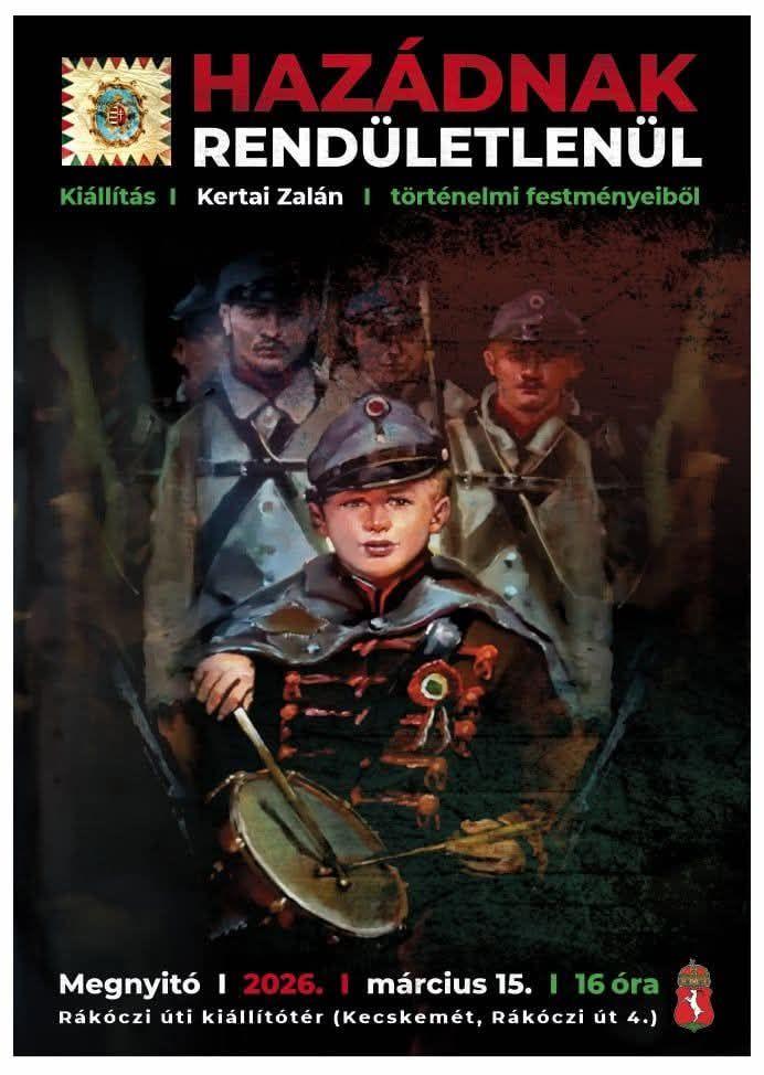Kertai Zalán festőművész, grafikus történelmi festményeinek kiállításával nyílik meg március 15-én a Kecskeméti Magyar Képtár – jelentették be a szervezők.